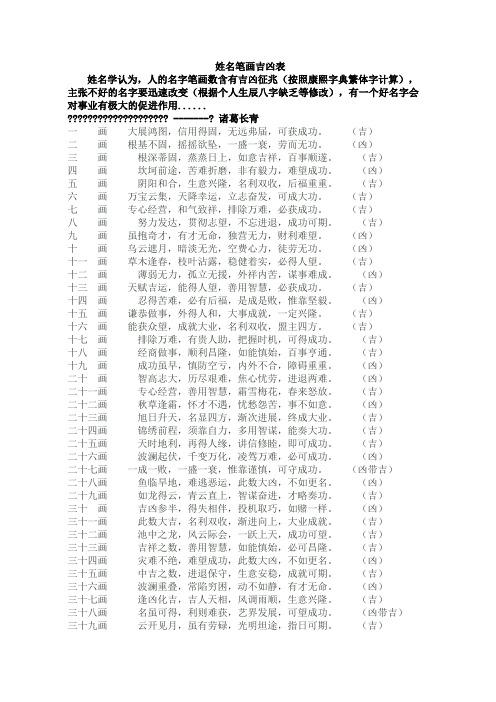 总笔画吉凶一览表