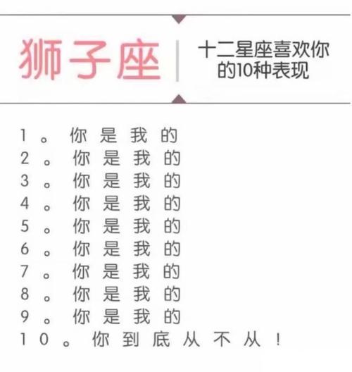 此外,狮子座喜欢一个人时,还会表现出以下一些其他迹象: