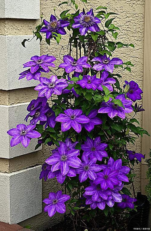 铁线莲花谐音“铁莲花”,寓意“铁骨铮铮、坚强不屈”。,它代表着坚韧不拔的精神和旺盛的生命力。将铁线莲花摆放在阳台上,有驱邪避煞、守护家园之效。
