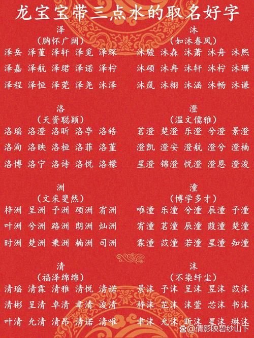 在我国文化中,龙被视为中华民族的图腾,寓意着祥瑞、权贵。给龙年出生的宝宝取一个含三点水的名字,既蕴含父母的殷切期望,又彰显传统文化韵味。