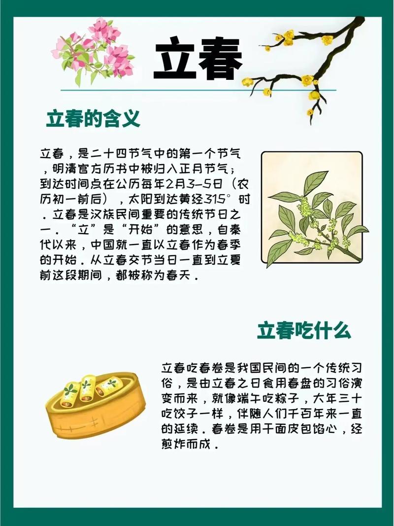 食补养生,增强体质:立春时,饮食宜温热,滋补肝肾。多吃菠菜、春笋等应季蔬菜,增强体质,预防疾病入侵。