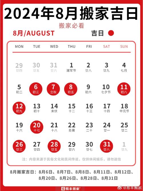 2024年八月搬家吉日一览