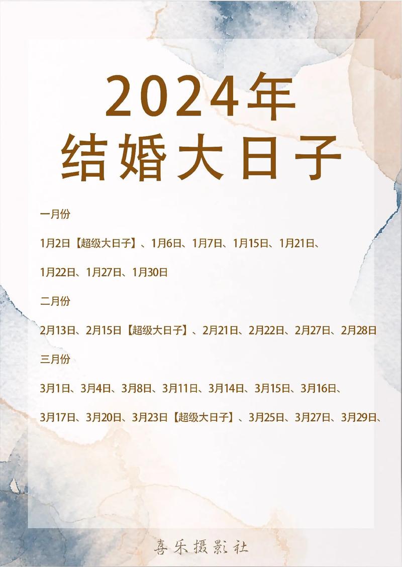 对于龙蛇属相的夫妻来说,2024年适宜结婚的吉日如下: