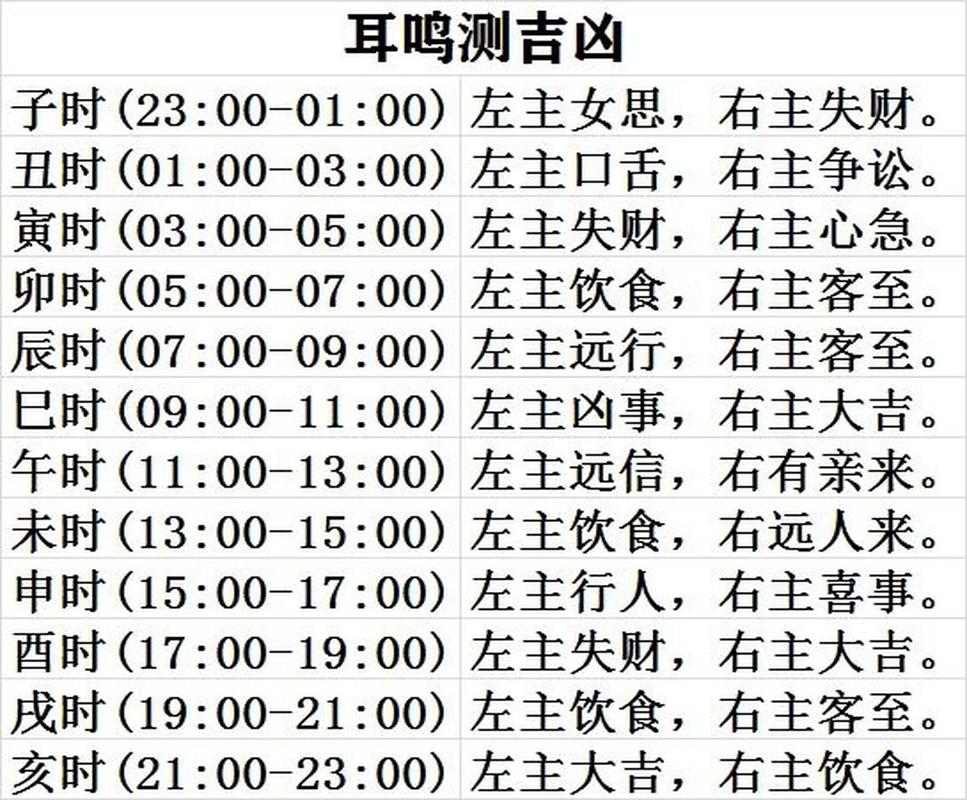 不吉之事:古语有云:"左耳鸣,客至;右耳鸣,事来。"在戌时,左耳鸣可能预示着不吉利的事情发生。