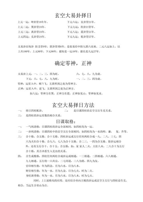 玄空大卦是由宋代易学大师李虚中所创,结合了《易经》中的卦象与飞星理论,形成了一套完整的时空定位系统。玄空大卦通过分析特定日子的天象和星象,推算出该日子是否有利于某个人或某件事的进行。与传统的择日方法不同,玄空大卦更加注重“天人合一”,即天时、地利、人和的相互关系。