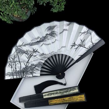 古风水墨折扇既是工艺品,也是艺术品。其扇面书画笔墨传神,意境悠远,具有很高的收藏价值。古玩爱好者和书画爱好者常收藏折扇,将其作为雅玩把件。