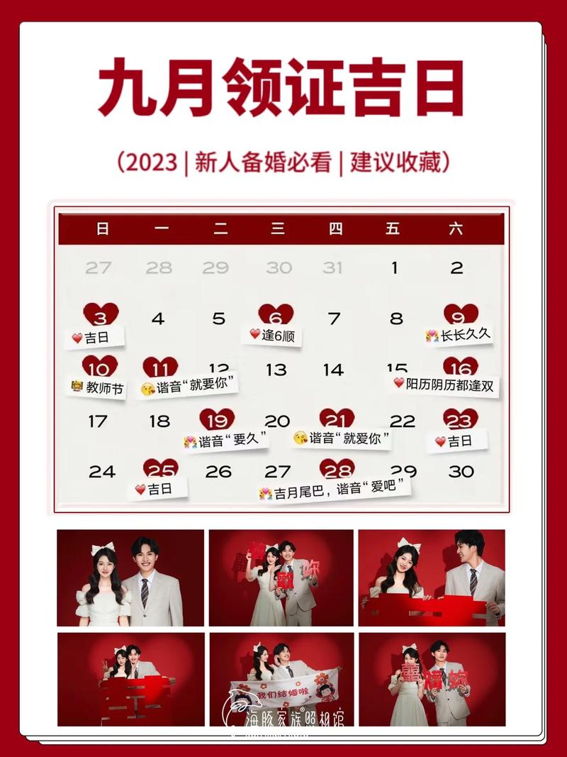 在九月选择结婚领证的吉日,传统的黄历和个人八字匹配都是重要的参考因素。最重要的是选择一个对你们来说特别且有意义的日子,无论是传统的吉日还是自己认为的幸运日,都应该让你们感到开心与满足。婚姻的美好,源自于双方的心意和努力,不仅仅是一个日期的选择,而是对未来共同生活的美好展望。