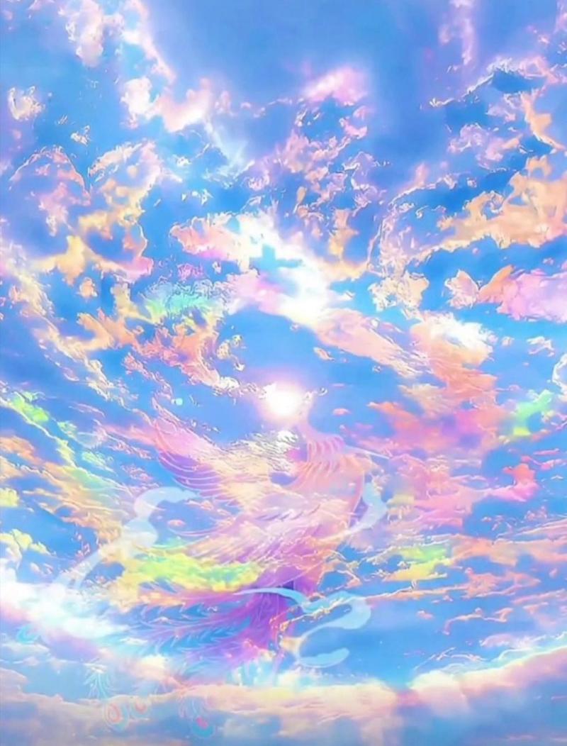 天空出现七彩云霞,祥瑞之兆。红色霞光预示着官运亨通,财源广进。紫色霞光代表着贵人临门,。淡黄色霞光象征着喜得贵子,家庭和睦。