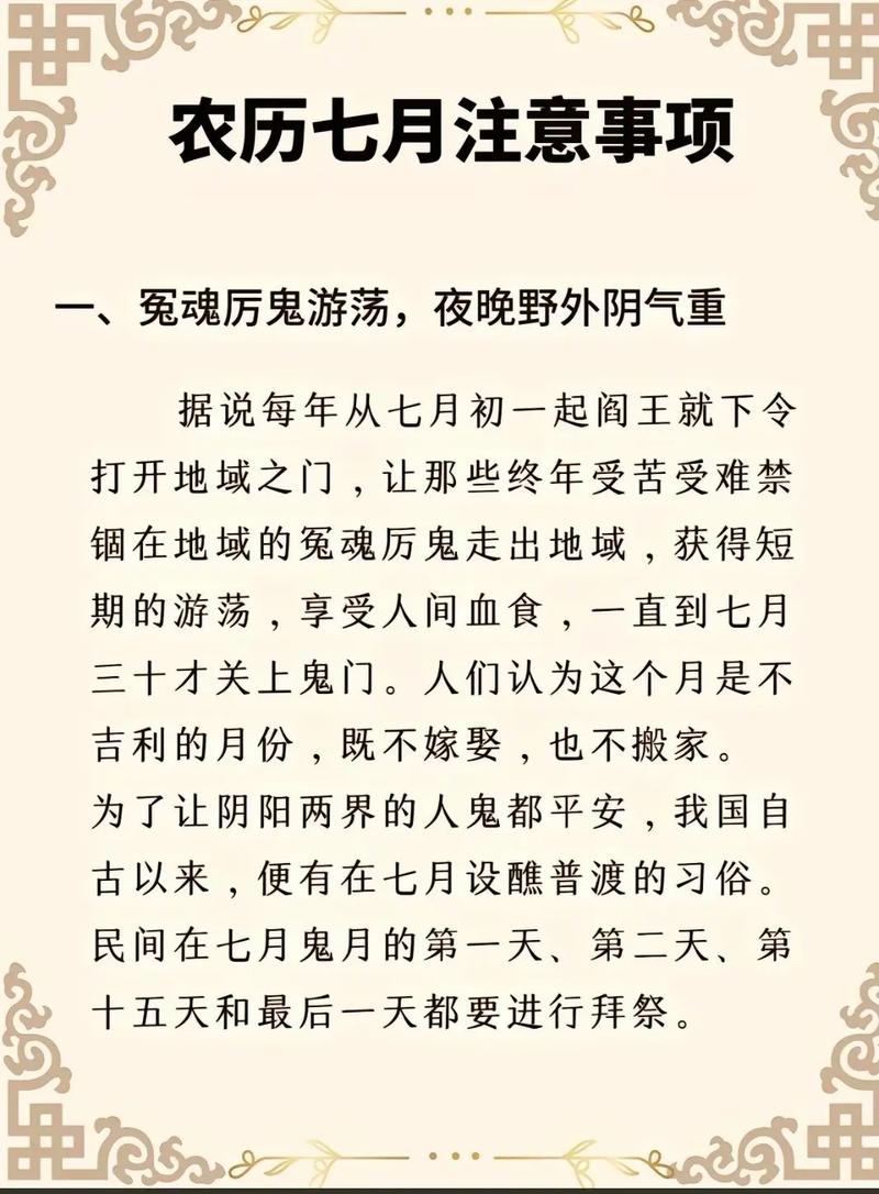 在鬼月期间,选择吉日进行重要活动是非常讲究的。根据《黄历》和《万年历》的传统理论,7月中的某些特定日期被认为是吉日。这些吉日通常与天干地支的组合、五行相生相克等因素密切相关。例如,某些日子被认为是“财神日”,适合进行财务相关的活动;而另一些日子则是“安宅日”,适合进行家庭安置和修缮。