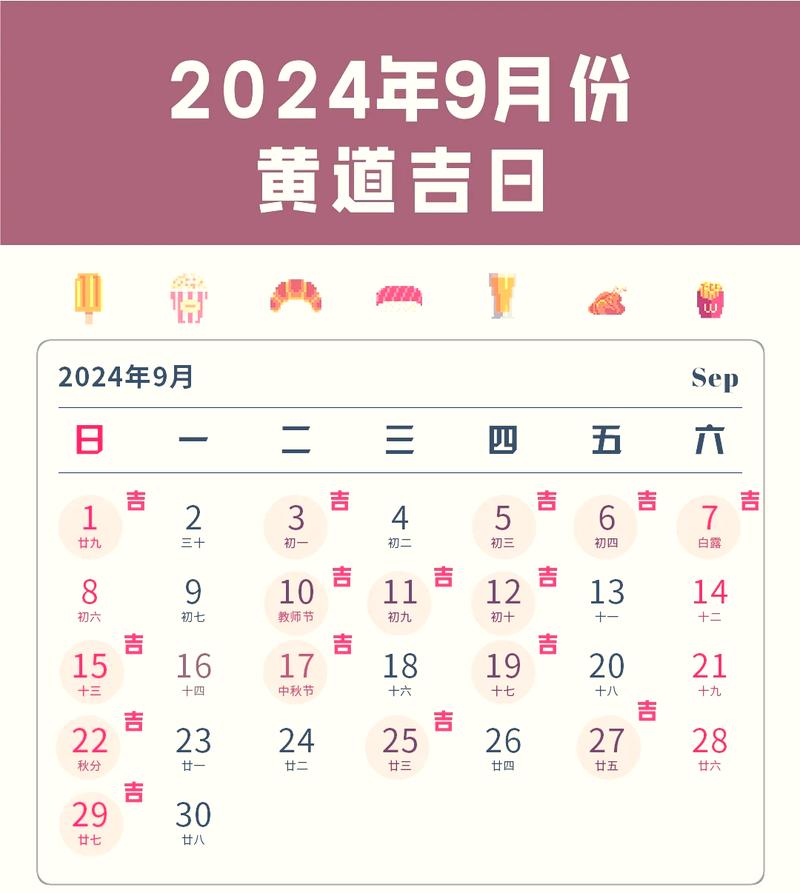在2024年的9月,具体的吉日包括: