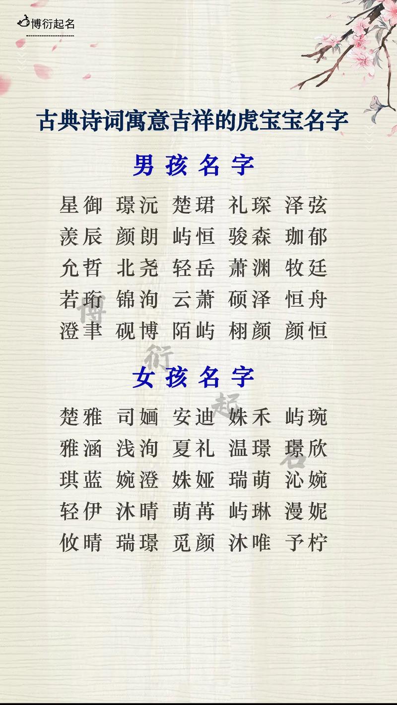 文化中,古诗词不仅是文学的瑰宝,更是传递情感和价值观的重要载体。当我们为虎宝宝取名时,融入古诗词的元素,既能体现传统文化的深厚底蕴,又能赋予孩子独特而富有意义的名字。