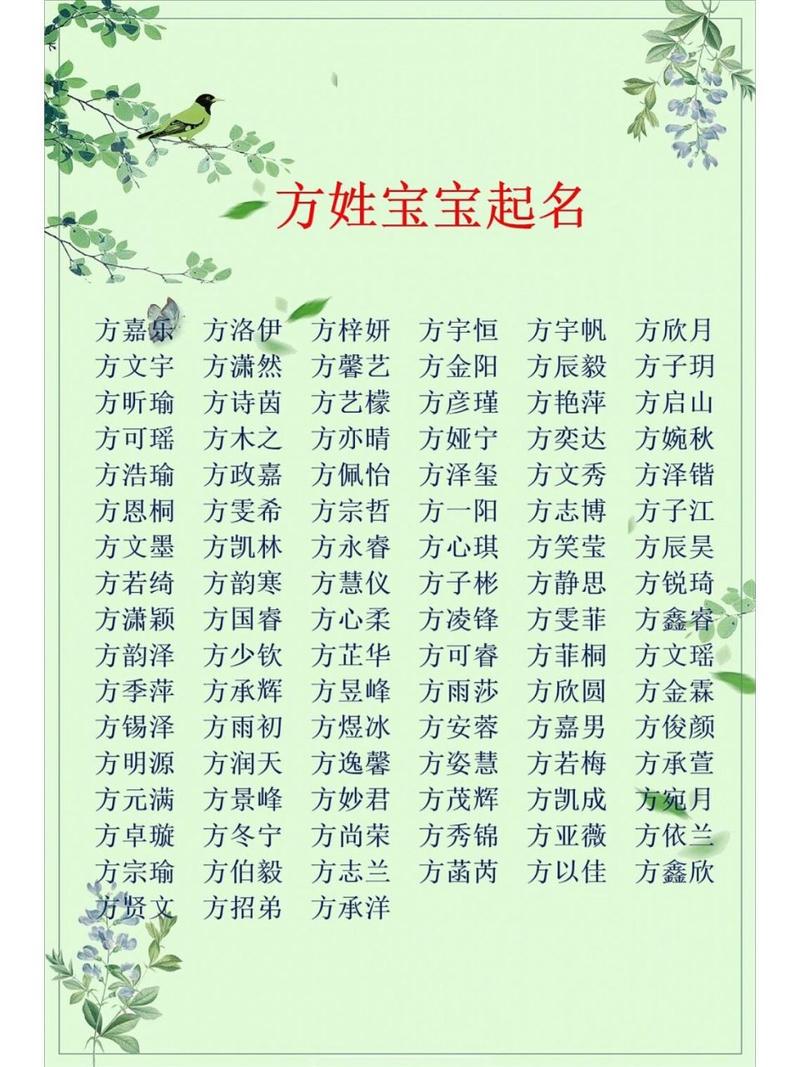 方姓本身具有一种简洁而大方的特点,在为女孩起名时,应选择那些音韵和谐、含义深远的字。例如,“方心”寓意着心灵的纯洁;“方语”则表达了才华横溢、口才出众的愿望。通过这些字的搭配,可以让名字既有内涵,又显得独特。