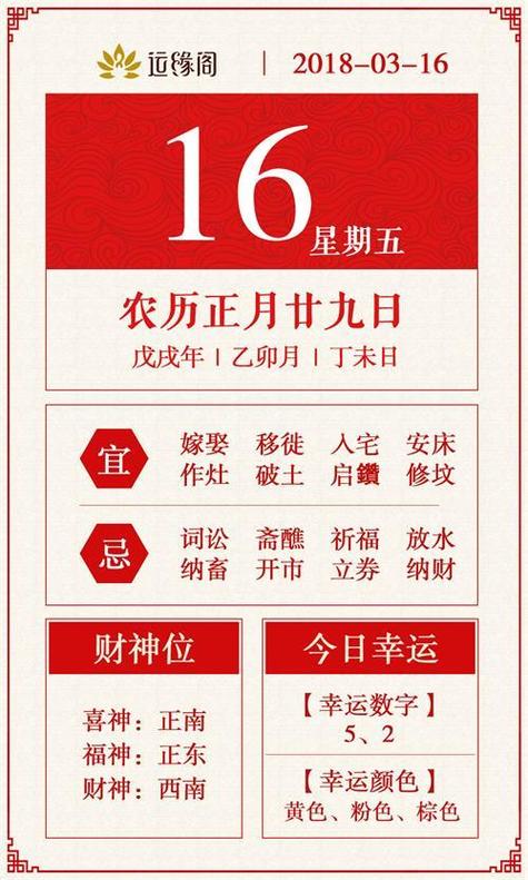 2018年正月十六的吉凶时,是祈福纳祥的好时机。选准吉时,虔诚祭拜,相信可以为新的一年带来福运安康,财源广进。