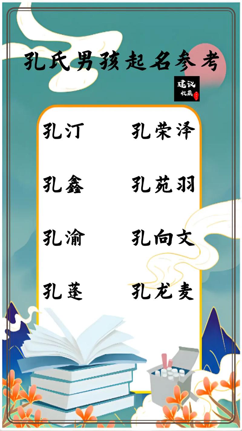 孔仁:取自孔子的仁爱思想,寓意宝宝善良友善,德才兼备。