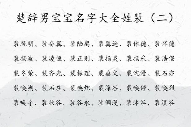 楚辞有典故男孩起名字阳光好听的牛年宝宝取名字推荐想要给牛年的男孩起一个有气质的名字,需要从经典文学楚辞中下手,楚辞中包含了春秋时代的神话典故以及君王故事,寓意深刻,用以给男孩取名参考是再合适不过了。