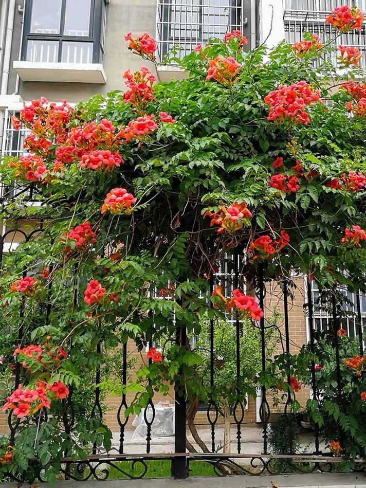 凌霄花又名金线吊葫芦,花朵呈金黄色,寓意着飞黄腾达,鸿运当头。栽种于后院的北墙或北门附近,可化解阴气,提升家庭运势。