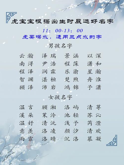 在给虎宝宝取名时,五行理论是不可忽视的。根据生辰八字,分析孩子的五行缺失,选择合适的字来补充。比如,若宝宝的五行中缺水,可以选择含有“水”旁的字。音韵的搭配也极为重要,和谐的声调不仅易于发音,还能在日常交流中给人留下美好的印象。