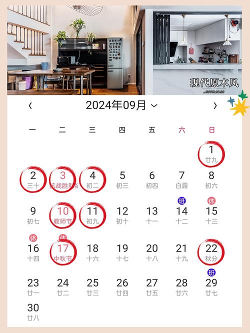 9月在农历上通常包括了阴历八月和九月。这两个月份的吉日受影响因素较多,如五行八字、天干地支等。在选择吉日时,我们需要考量这些因素,以确保装修能够顺利进行。9月的吉日往往以天时地利为基础,结合五行相生相克的理论,使得选定的日期能够最大化地避免不利因素的干扰。