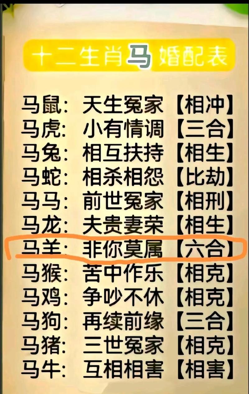 若二者命格相克,则婚配不宜。属马者命犯桃花劫,易有外遇。属羊者命中缺火,恐有孤寡之兆。此种情况下,即便性格相合,亦难逃凶险。
