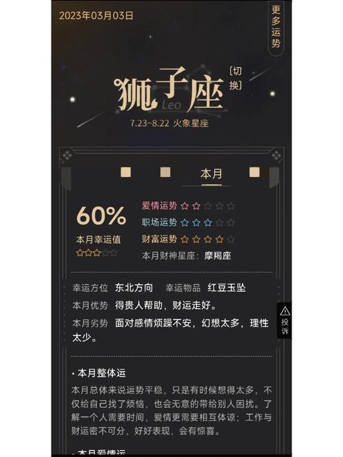 对于狮子座女生而言,3月注定是一个充满变化和挑战的月份。进入春季,狮子座女生的情感和事业运势将经历显着的转折。这个月,你将面临一些关键的决策,这些决策将影响你未来几个月的生活。抓住这个时机,准确把握自己的目标,将是你的 ultimate 任务。