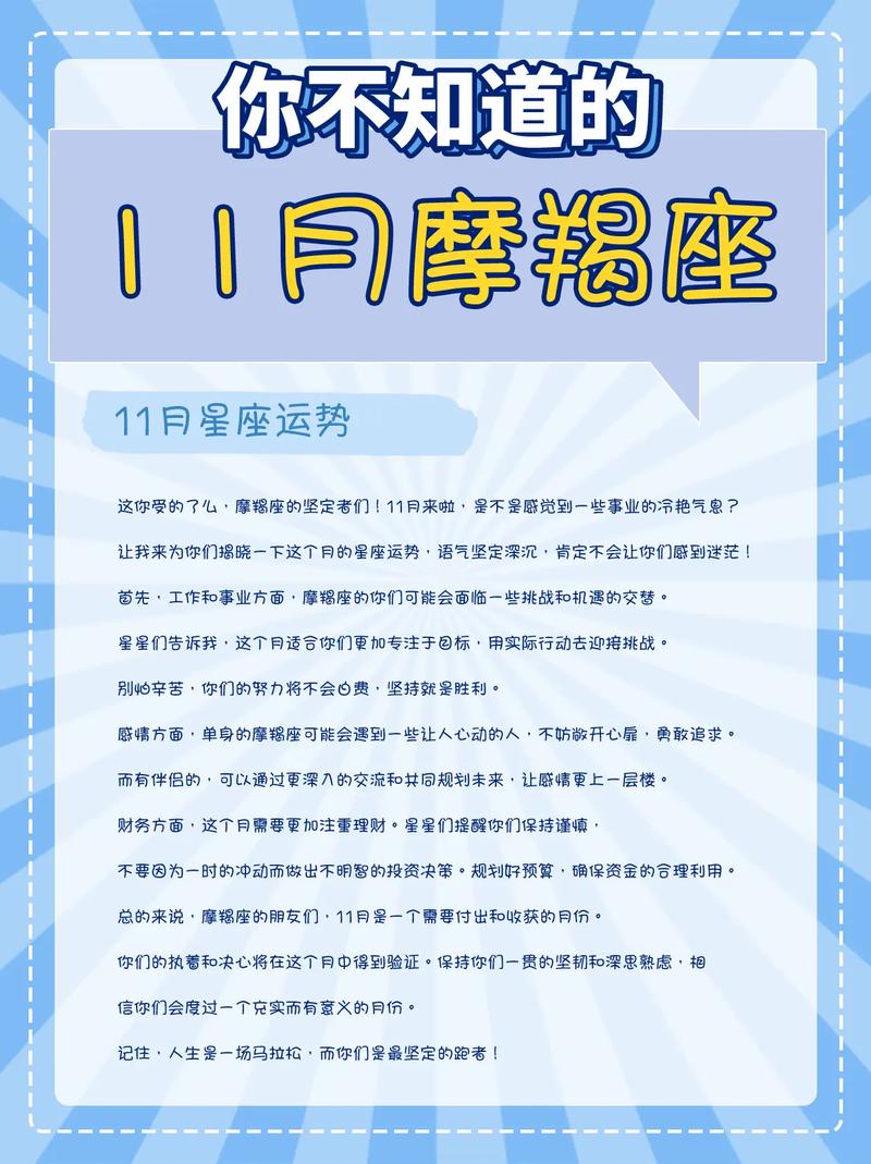 十一月底对于摩羯座来说是一个充满挑战但也充满机会的时期。通过认真审视自己的情感世界,保持开放与真诚的态度,你将能够在这段感情风暴中稳步前行,实现个人的成长与感情的升华。