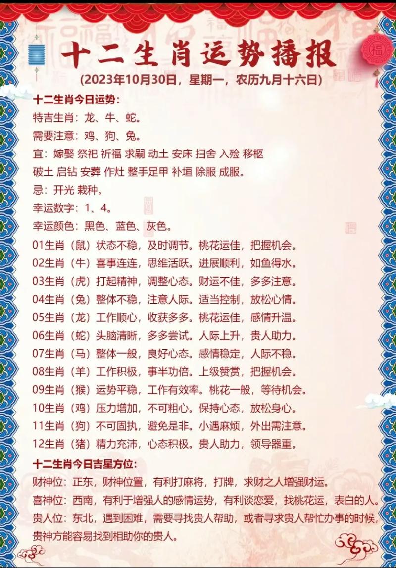 生肖狗:忠诚,年底贵人相助。事业发展顺利,爱情甜甜蜜蜜。