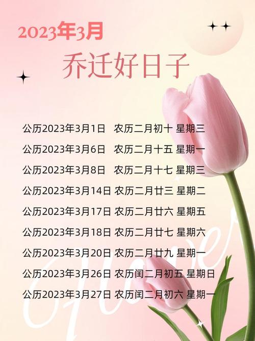 传统文化中,搬家被视为人生中一个重要的转折点。选择一个吉日进行搬迁,不仅能让新居带来好运,还能为未来的生活增添福气。而三月,这个春意盎然的月份,因其万物复苏而备受青睐。本文将深入探讨三月搬家的吉日,帮助你在新家开启美好生活的篇章。