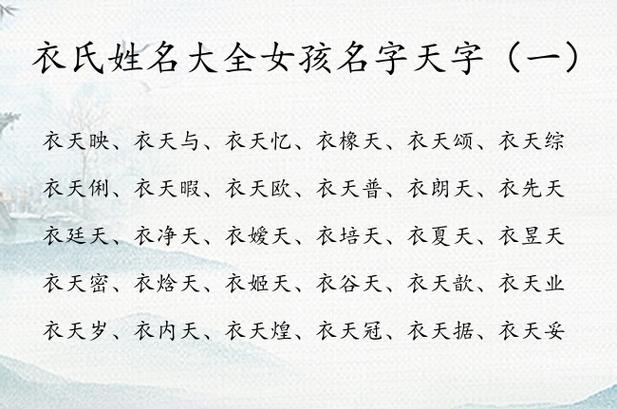 为女宝宝选择带有“天”字的名字时,通常希望名字能够展现出优雅、美丽和聪慧。以下是一些精美的名字推荐: