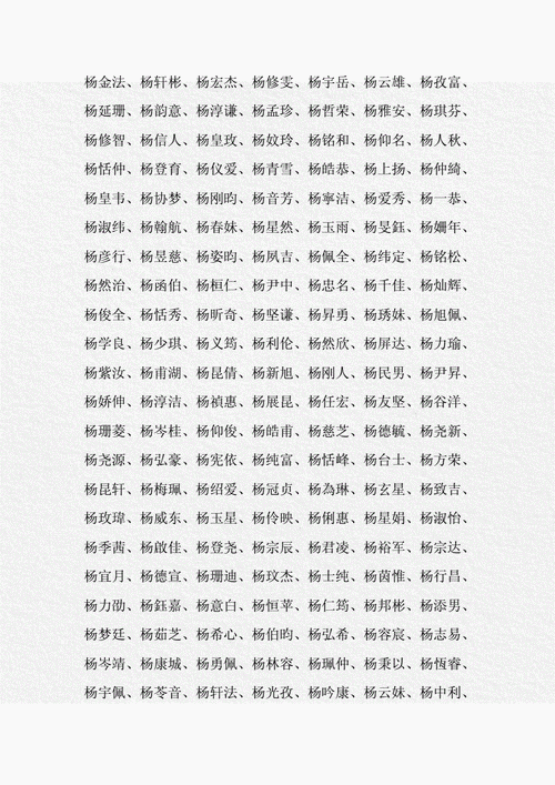 在为杨姓宝宝取名时,还需要注意一些细节。例如,名字的音韵搭配要和谐,避免使用发音拗口的字;避免与家族中的常用名字重复,保证名字的独特性。取名时还应考虑字义的吉祥性,确保名字能够带来积极的影响。
