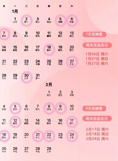 这一天被认为是“天赐良缘”的日子,适合属猪女及其配偶共同步入婚姻殿堂。选择这一天结婚,不仅有助于提升夫妻感情,还有利于家庭的和谐与安宁。