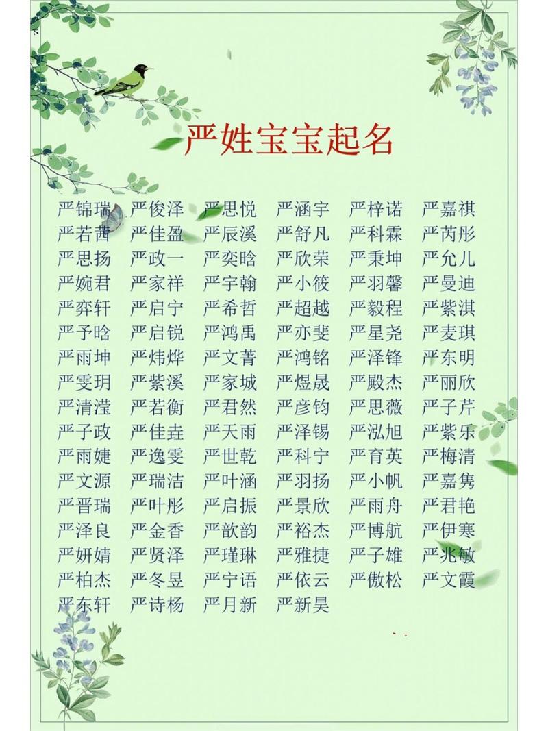 在为宝宝起名字时,姓氏的选择往往对名字的整体风格与寓意起着关键作用。严姓作为一个古老且具有深厚文化底蕴的姓氏,在现代命名中同样展现出其独特的魅力。本文将深入探讨如何为严姓男宝宝取一个既符合传统又具有现代感的名字,提供一系列丰富的取名方案,以帮助家长们为孩子选择一个既独特又有意义的名字。