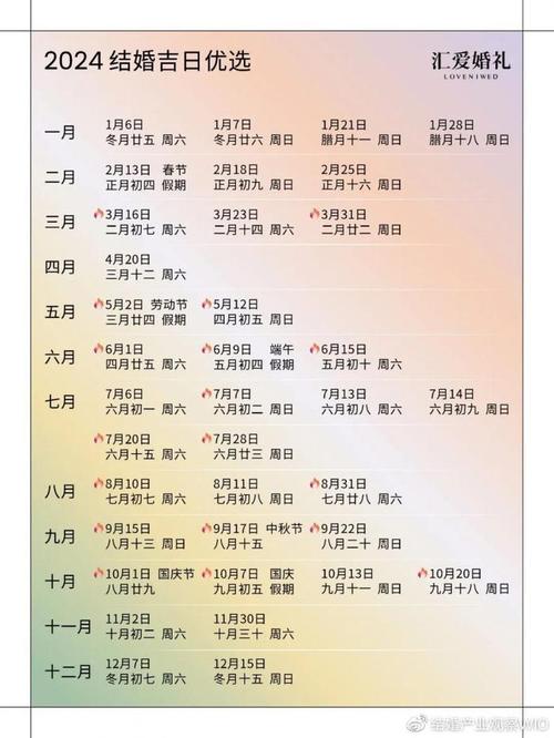 农历五月的结婚吉日不仅仅是一个日期的选择,更是幸福和好运的象征。通过对2024年农历五月的吉日进行详细分析,您可以找到一个最适合自己的结婚日期,为您的婚礼带来更多的祝福和好运。希望您和您的伴侣能够在这个美好的时节,开启一段幸福快乐的婚姻生活。