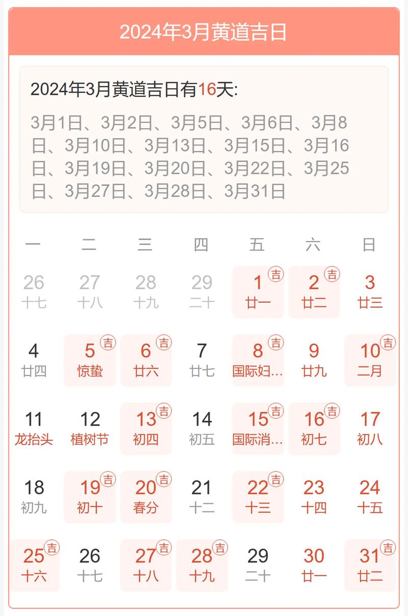 根据以上标准,2024 年 3 月适合打井的黄道吉日如下: