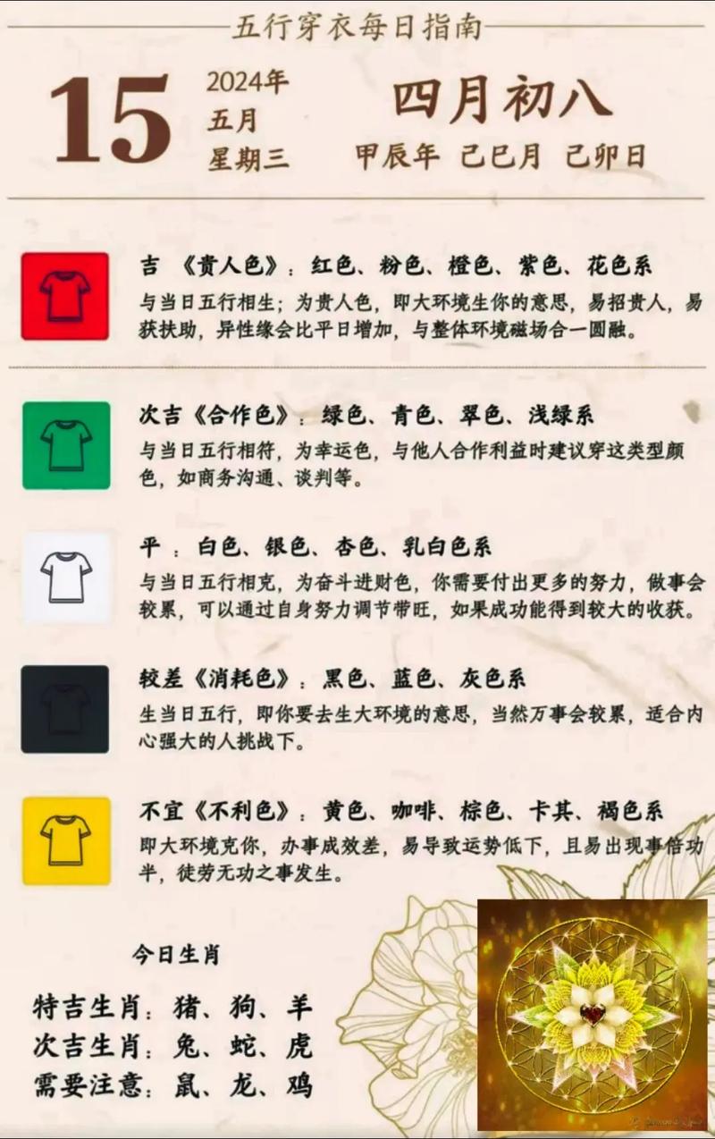 相生是指五行按照固定的顺序互相滋生和促进。我们可以根据这个原则,通过穿戴相生颜色的衣服,来平衡自身气场。