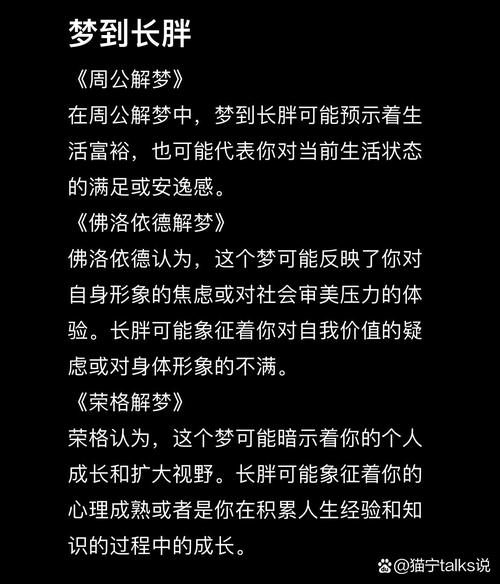 在梦境中,身体的变化往往承载着深刻的象征意义。变胖,这一看似平常的生理现象,在周公解梦中却有着令人深思的解读。
