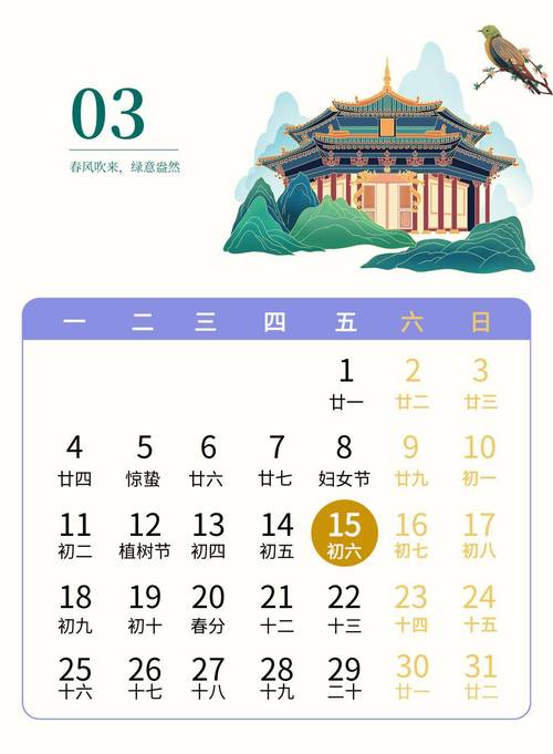 在中华文化中,选择吉日是一项重要的传统习俗。尤其是在农历三月,随着春天的来临,自然界的万物复苏,人们的生活也逐渐恢复了活力。农历三月不仅是一个新的开始,更是举行各种活动的最佳时机。那么,三月中有哪些吉日呢?本文将为您揭开农历三月吉日的神秘面纱,带您深入了解。