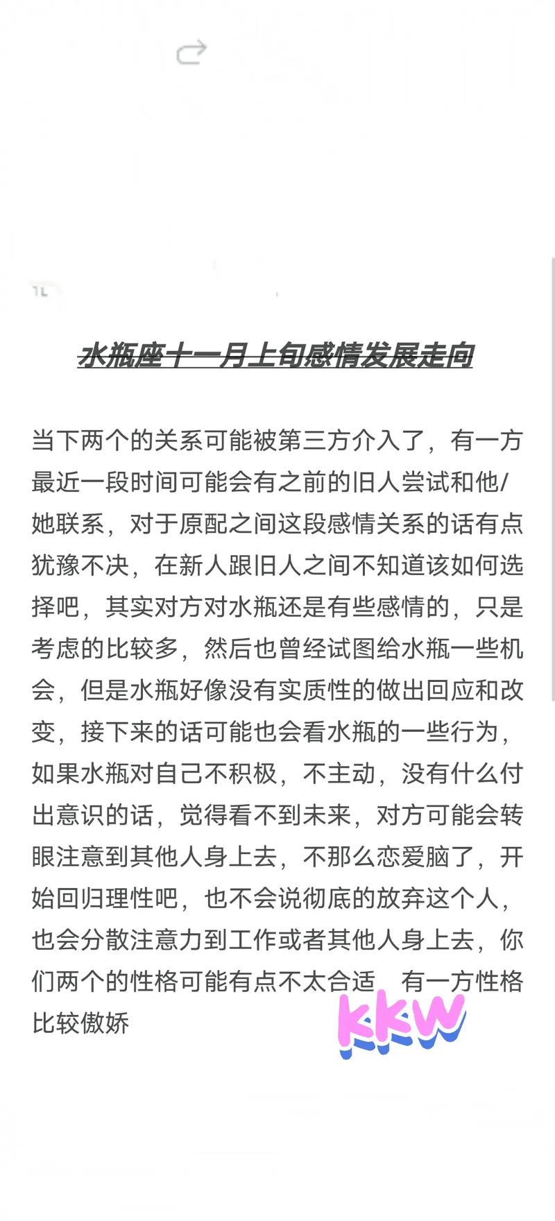 11月,水瓶座的社交圈也将对感情产生一定的影响。你们可能会重新联系一些旧友,或者在社交活动中结识到一些新朋友。这些社交互动可能会对你们的感情生活带来新的视角和启示。特别是在感情中,新的社交关系可能会引发一些深刻的思考,帮助你们更好地了解自己的情感需求和未来的方向。保持开放的心态,欢迎新朋友的也要处理好与旧友的关系,以免引发不必要的误解或冲突。