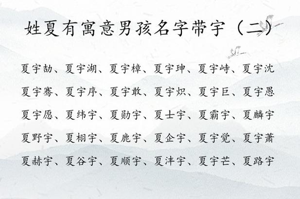 对于姓夏的男宝宝,名字不仅要符合虎年的气质,还要与“夏”姓的韵味相得益彰。以下是一些推荐的名字:
