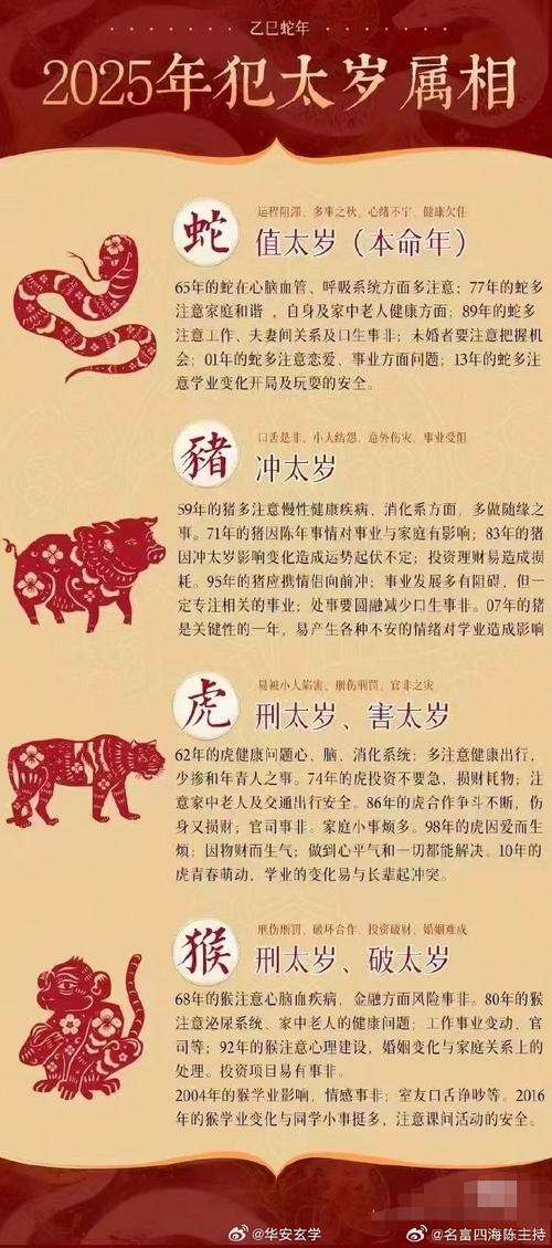 属猪的人在2024年可能会感受到诸多不顺,例如职业上的挑战、感情上的摩擦,以及个人健康的隐患。这些影响源自于太岁星君的阻碍,具体表现为各种外在或内在的不顺。比如,工作中的困境可能会使属猪者感到压力山大,而家庭中的争执则可能导致人际关系的紧张。了解这些具体影响是化解太岁困扰的第一步。