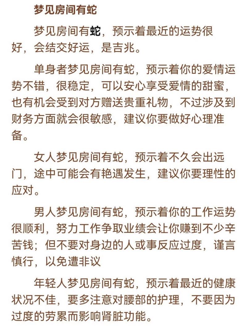然而,对于梦见蛇的具体含义,还需要根据梦境的具体场景和个人背景进行综合分析。