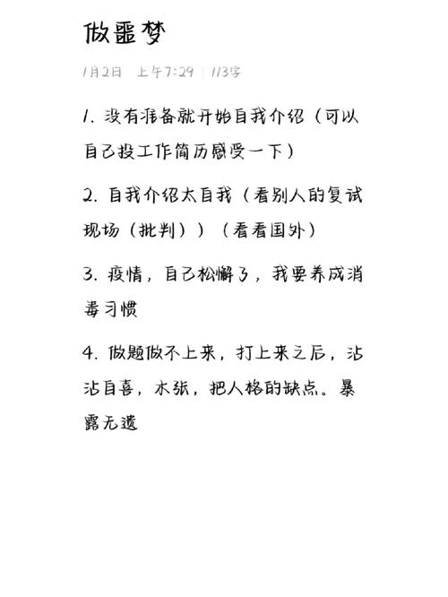 梦见准备复试还可以作为自我反思的契机。利用这个机会,仔细审视自己的目标和计划,确保你对未来的方向有清晰的认识。通过制定切实可行的计划和目标,调整自身的策略和方法,可以帮助你更好地应对即将到来的挑战。