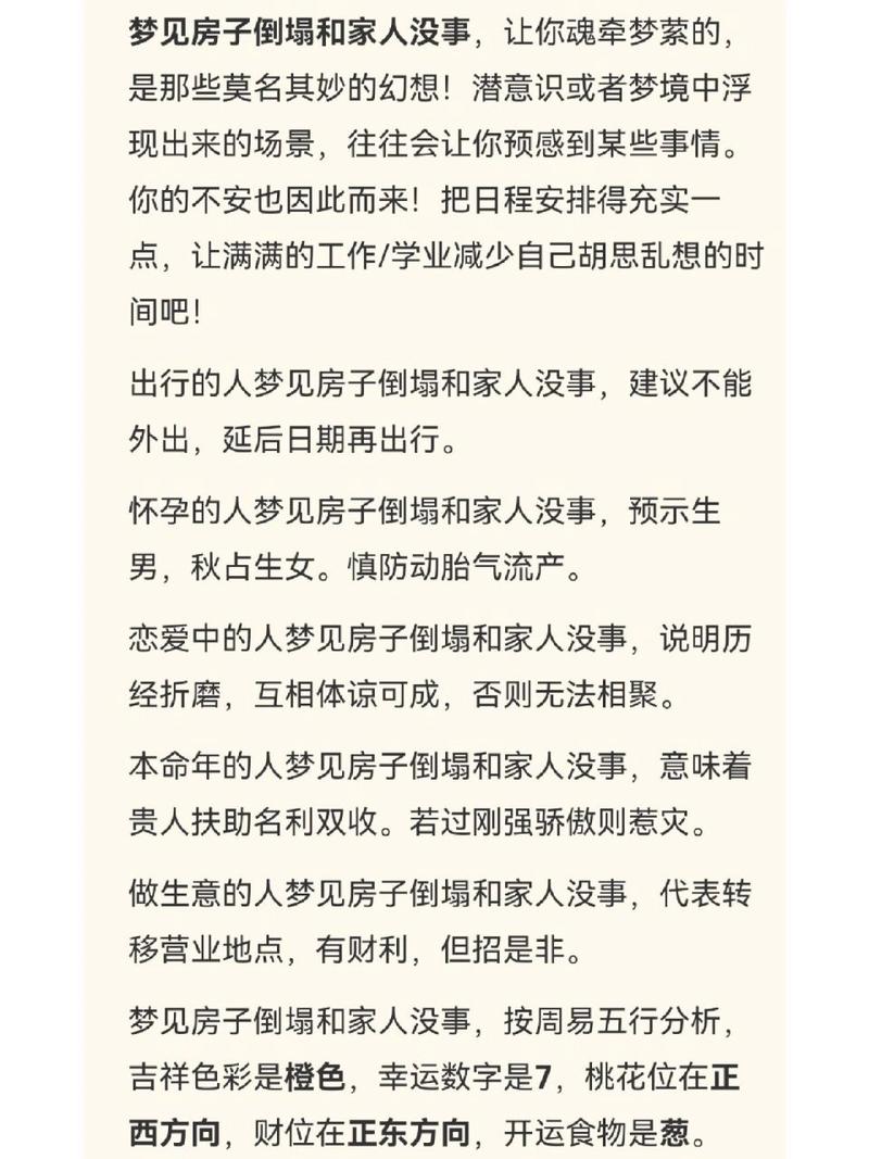 梦境是心灵深处的一面镜子,反映出我们潜意识中的情感、恐惧和希望。中年男人梦见房子倒塌,这样的梦境不仅仅是简单的视觉体验,更可能隐藏着对家庭、稳定和未来的深刻思考。在中年阶段,个体通常面临家庭和事业的双重压力,梦境中房子倒塌可能暗示个体在面对生活中某种挑战或者变化时的内心反应和情感投射。本文将深入探讨中年男人梦见房子倒塌的多重解读,从心理学角度分析其可能的象征意义,并结合实际生活中的情境,为读者带来全面的解析与启示。