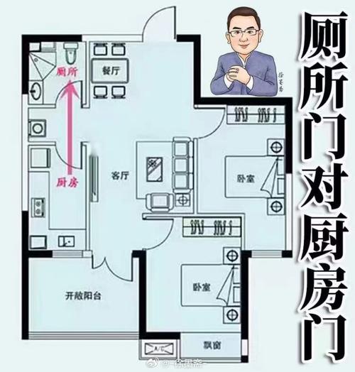 挪动厨房门:将厨房门移至与厕所门不相对的位置。